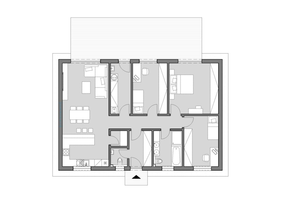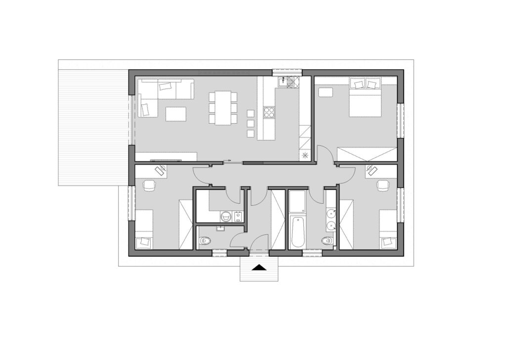Predstavujeme Rodinný dom A02 ktorý si môžete objednať v troch verziách – VERZIA A a VERZIA B – C. Tento štýlový RODINNÝ DOM ponúka 107 m² obytnej plochy a od 22 m² rozľahlú terasu, čo predstavuje perfektnú harmóniu medzi funkčnosťou, estetickým pôvabom a ekologickou udržateľnosťou.